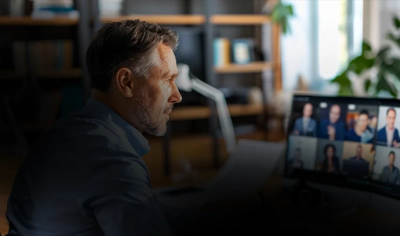 Participe de encontros online mensais de interação e apresentação de negócios.